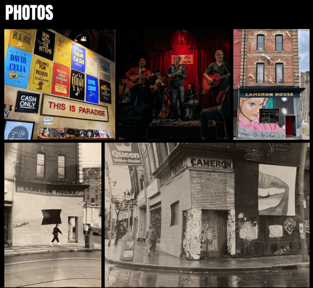 Some of the rest of it may be found in the old, analog way by spending time at the Cameron House, looking at its walls, listening to the bands that play there, and talking to its patrons.